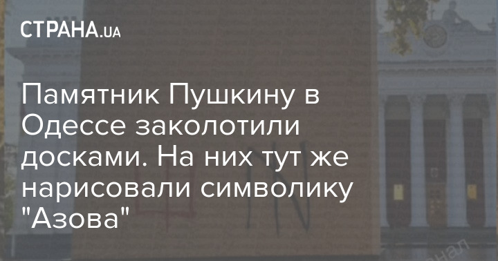 В Одессе уже окончательно закрыли листами фанеры памятник поэту Александру Пушкину, расположенному на Приморском бульваре напротив здания горсовета.