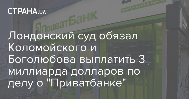Сегодня Высокий суд Англии постановил, бывшие владельцы "Приватбанка" Игорь Коломойский и Геннадий Боголюбов обязаны выплатить финучреждению свыше 3 миллиардов долларов в виде возмещения ущерба и судебных издержек после того, как в июле этого года их признали виновными в совершении масштабного мошенничества против банка.