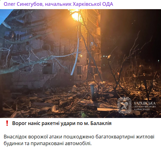 Ночью РФ ударила ракетами по Балаклее под Харьковом. Есть погибшие и раненые, загорелась многоэтажка