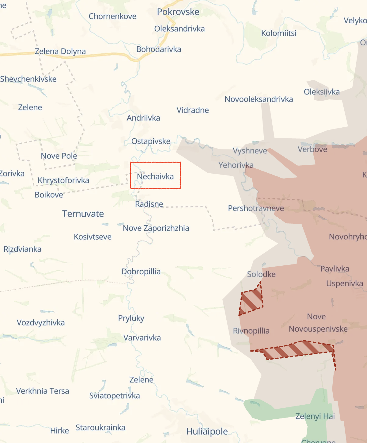 Россия заявила сегодня о захвате Нечаевки в Днепропетровской области. Это село к югу от недавно взятой россиянами Даниловки, которая находится на трассе между Покровским и Гуляйполем.