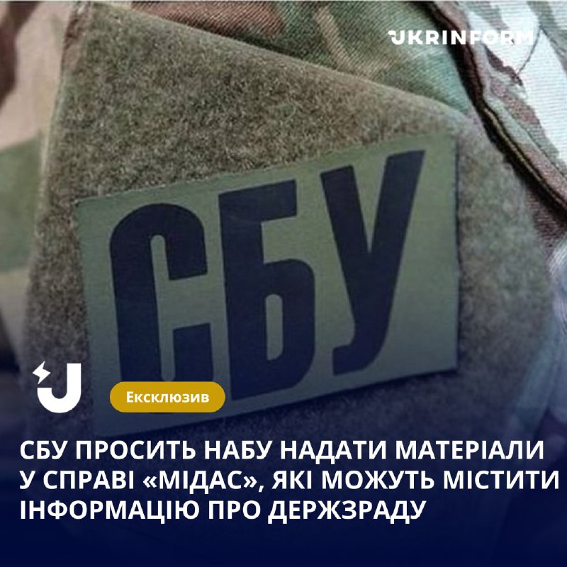 Служба безопасности Украины обратилась в Национальное антикоррупционное бюро Украины с просьбой предоставить материалы по делу "Мидас", которые могут содержать информацию о государственной измене.
