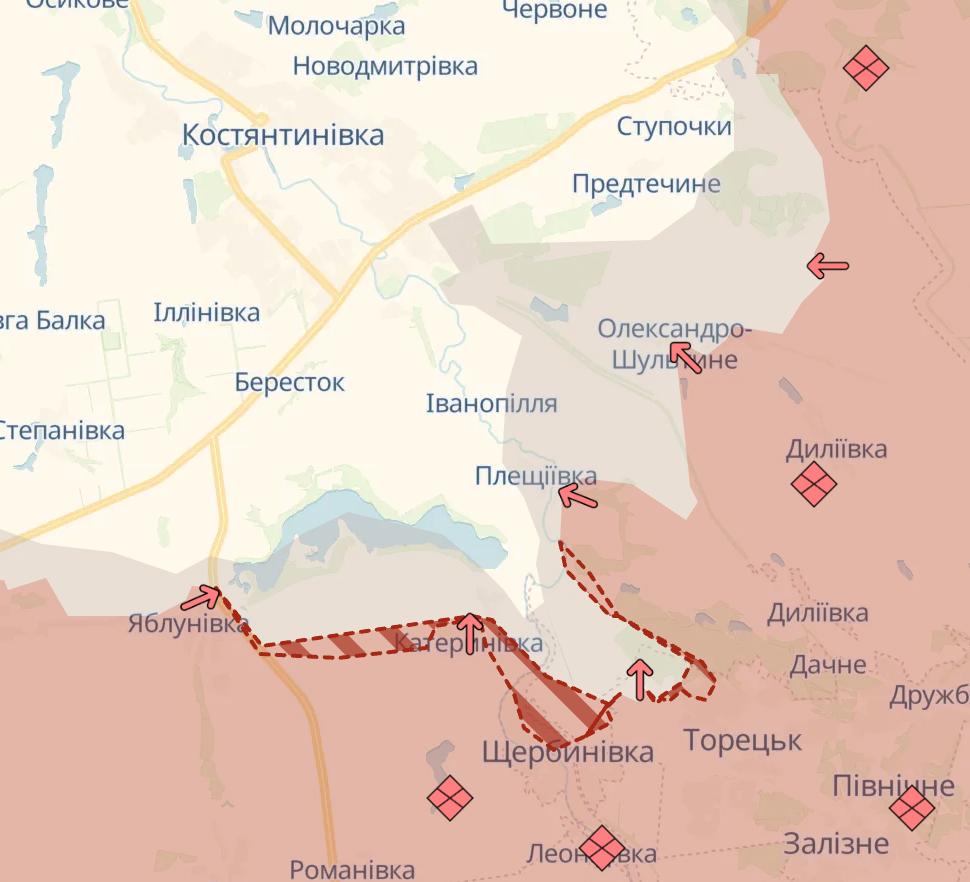 При этом указано и продвижение россиян на широком участке южнее Константиновки.