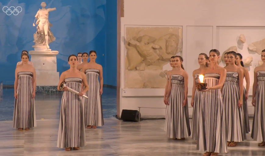 Мероприятие проводилось в Археологическом музее города в присутствии президента Греции Константиноса Тасуласа, президента Международного олимпийского комитета (МОК) Кирсти Ковентри, президента оргкомитета Олимпийских и Паралимпийских игр 2026 года Джованни Малаго, главы Национального олимпийского комитета Греции Исидороса Кувелоса и других официальных лиц.