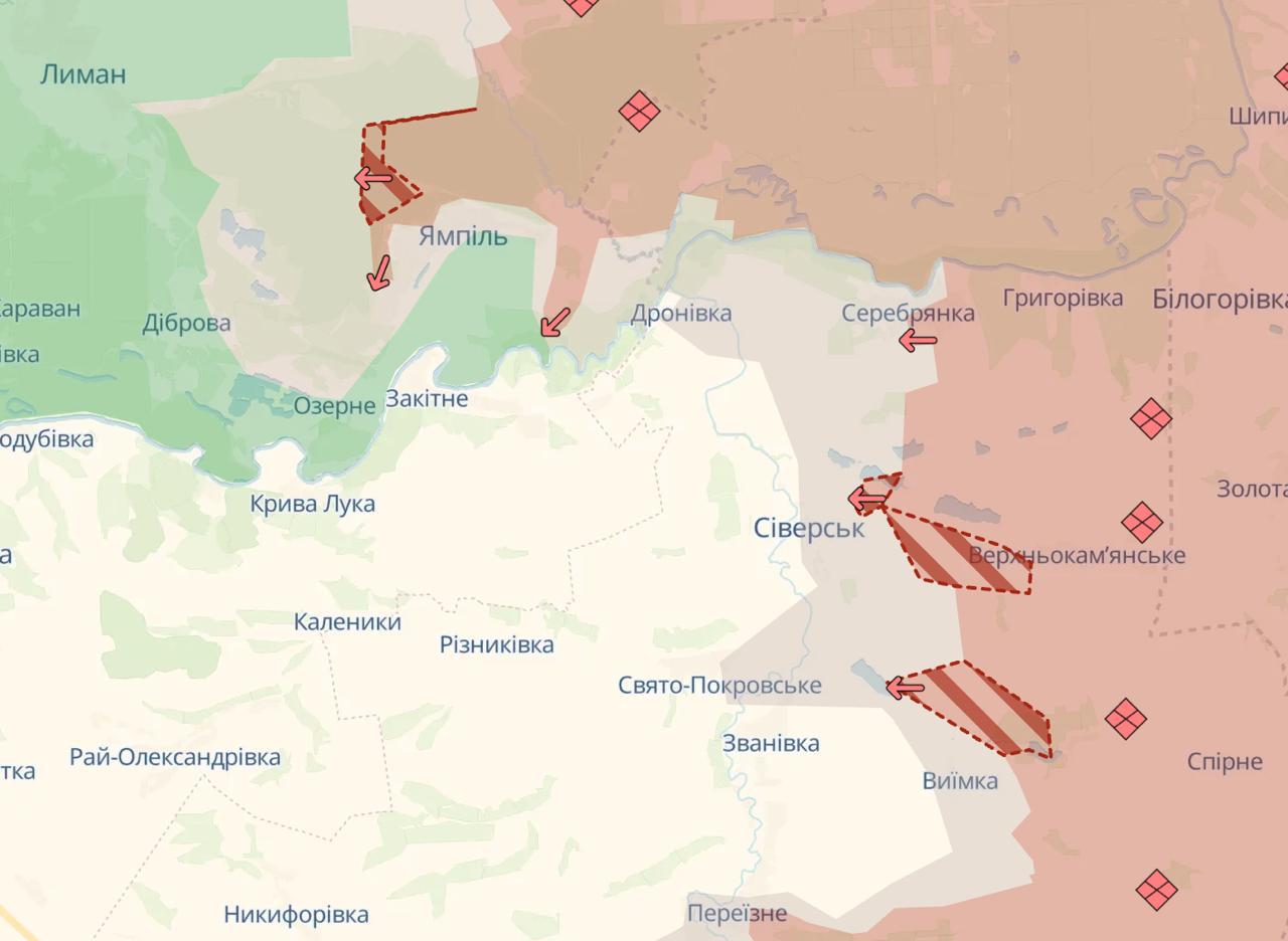 12:06 Армия РФ продвинулась под Ямполем и Северском на севере Донецкой области, сообщает Deep State.