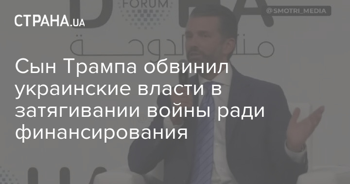 Сын Трампа обвинил украинские власти в затягивании войны ради финансирования