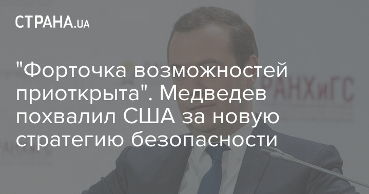 Заместитель главы Совета безопасности РФ Дмитрий Медведев, который ранее регулярно угрожал США ядерной войной, позитивно оценил новую американскую стратегию безопасности, которая призывает наладить отношения Запада с Москвой и в качестве ключевой цели обозначает завершение войны в Украине.