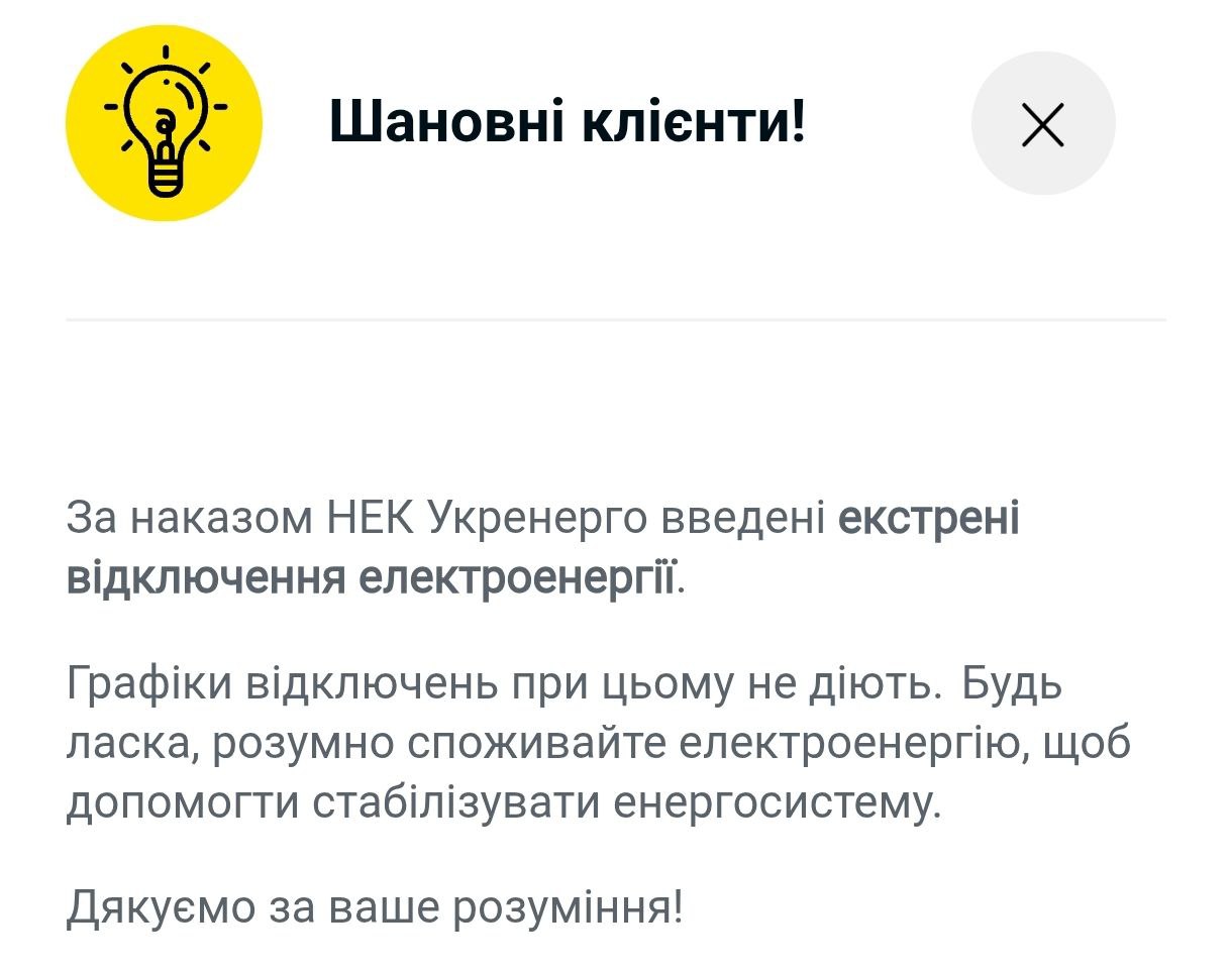 12:53 Уже по всему Киеву введены аварийные отключения света, сообщает ДТЭК. Ранее они были только на левом берегу.
