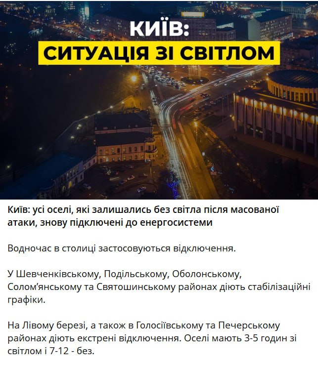 13.46 Экстренные отключения света вводятся по всему Киеву, сообщает гендиректор Yasno.