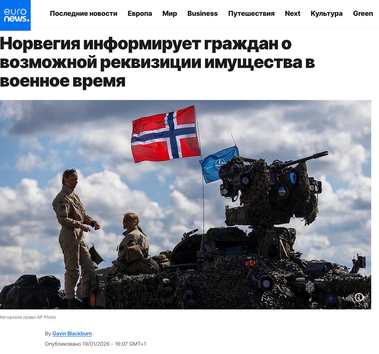 Напомним, что некоторые страны ЕС, куда не входит Норвегия, уже перебрасывают военных в Гренландию для защиты от возможного вторжения США.