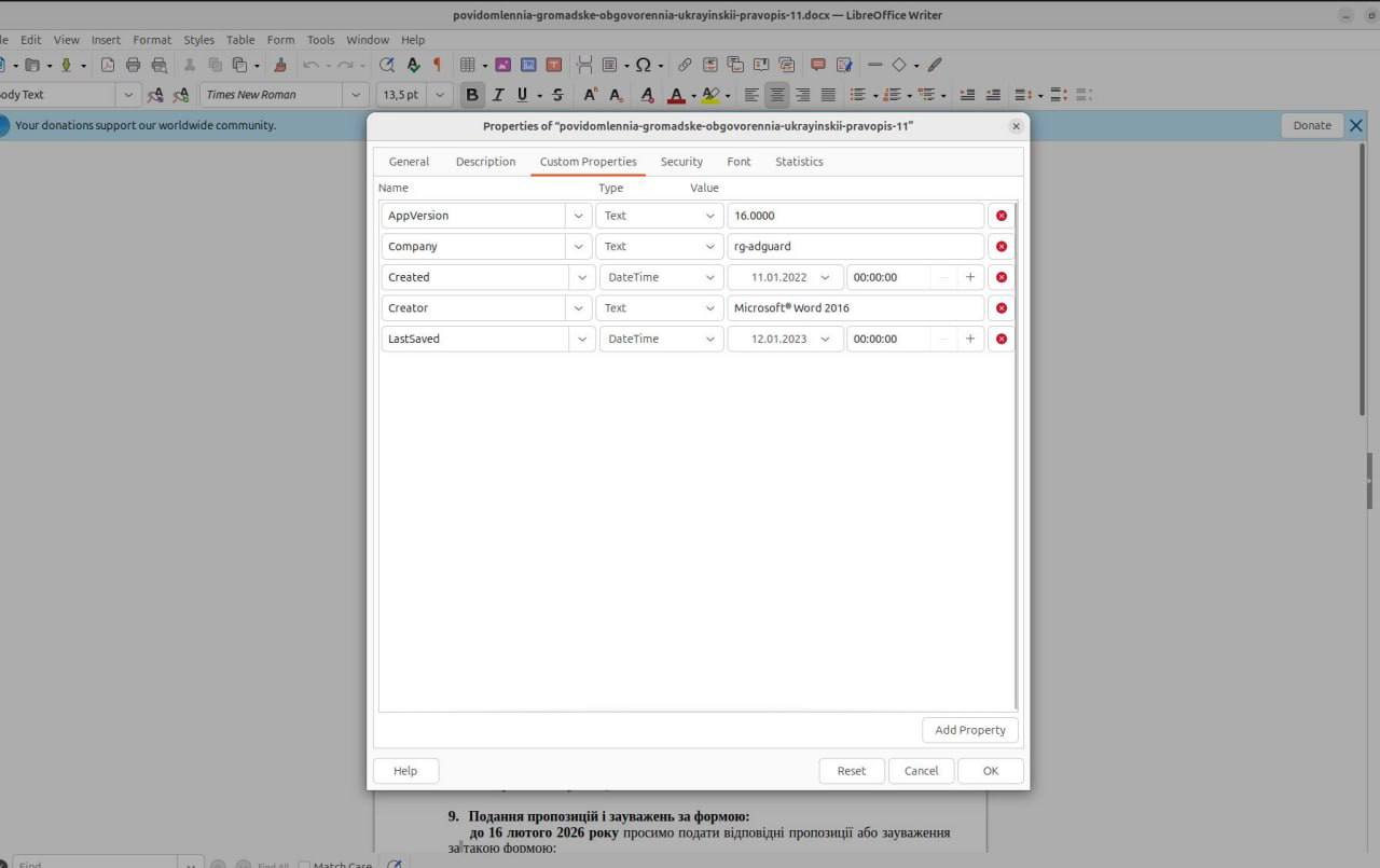 При детальном изучении самого документа у общественности возникли вопросы. Согласно метаданным PDF-документа, файл был создан на компьютере заместителя главы Национальной комиссии Александра Мирончука, кандидата филологических наук по специальности "Украинский язык". При этом в параметрах файла указана языковая настройка ru-UA, то есть русский язык с украинской региональной маркировкой.