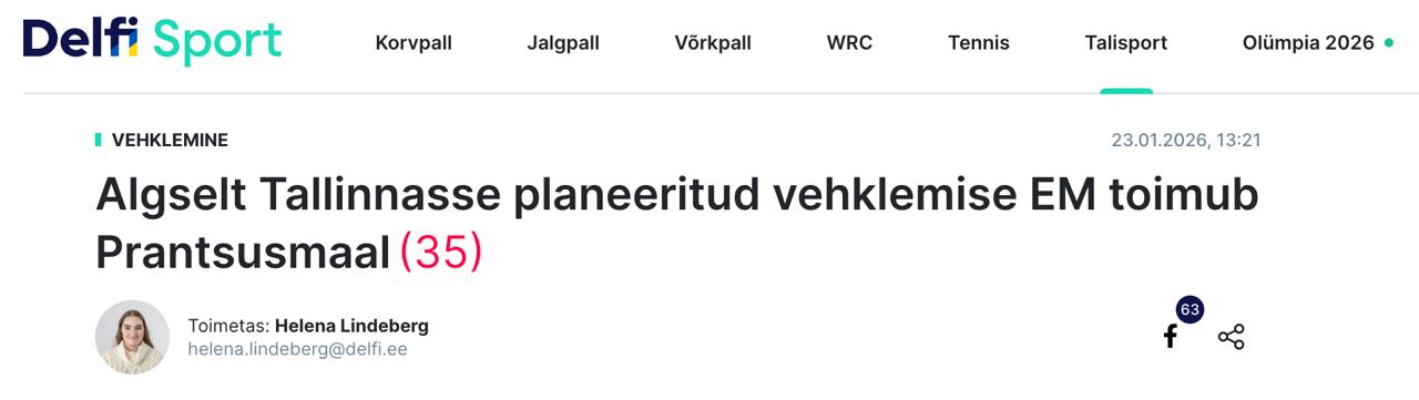 Чемпионат Европы по фехтованию, планировавшийся в Эстонии, пройдет во Франции. Изменения произошли из-за того, что Таллин отказывается выдавать визы спортсменам из РФ и Беларуси.