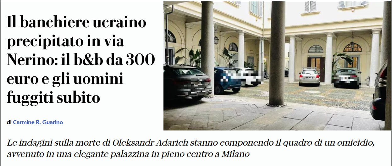 В Италии убили и выбросили из окна украинского банкира Адарича - La Republicca