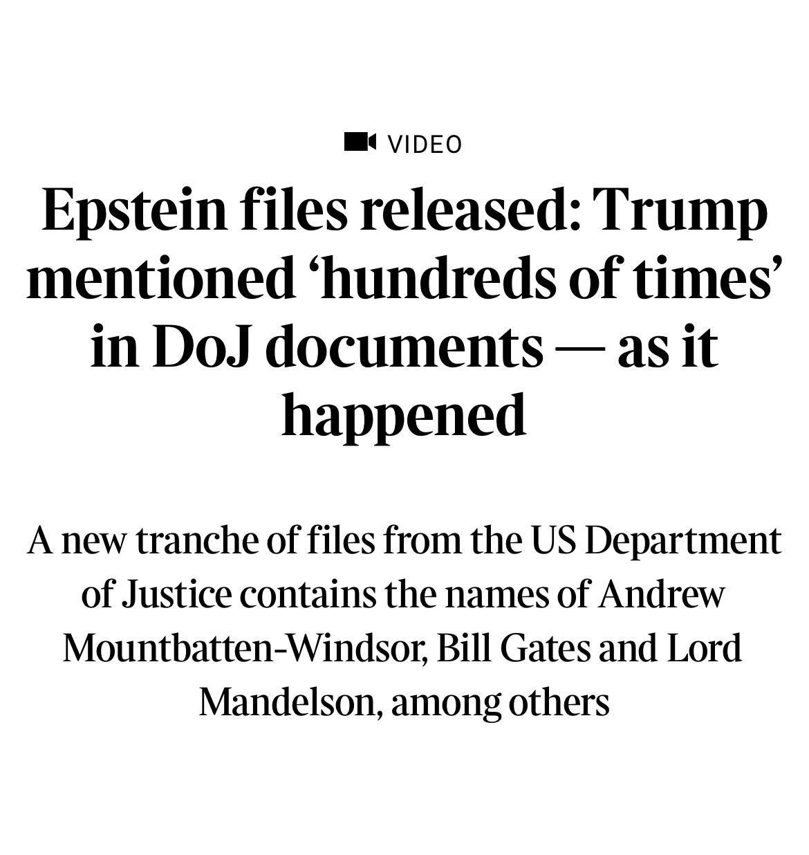 Между тем журнал The Times со ссылкой на опубликованые документы, в которых содержатся показания о насилии над несовершеннолетними, заявляет, что имя Трампа упоминается в "файлах Эпштейна" больше трех тысяч раз.
