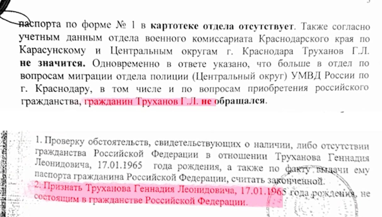 Труханов обнародовал официальное подтверждение отсутствия у него российского гражданства. Документ
