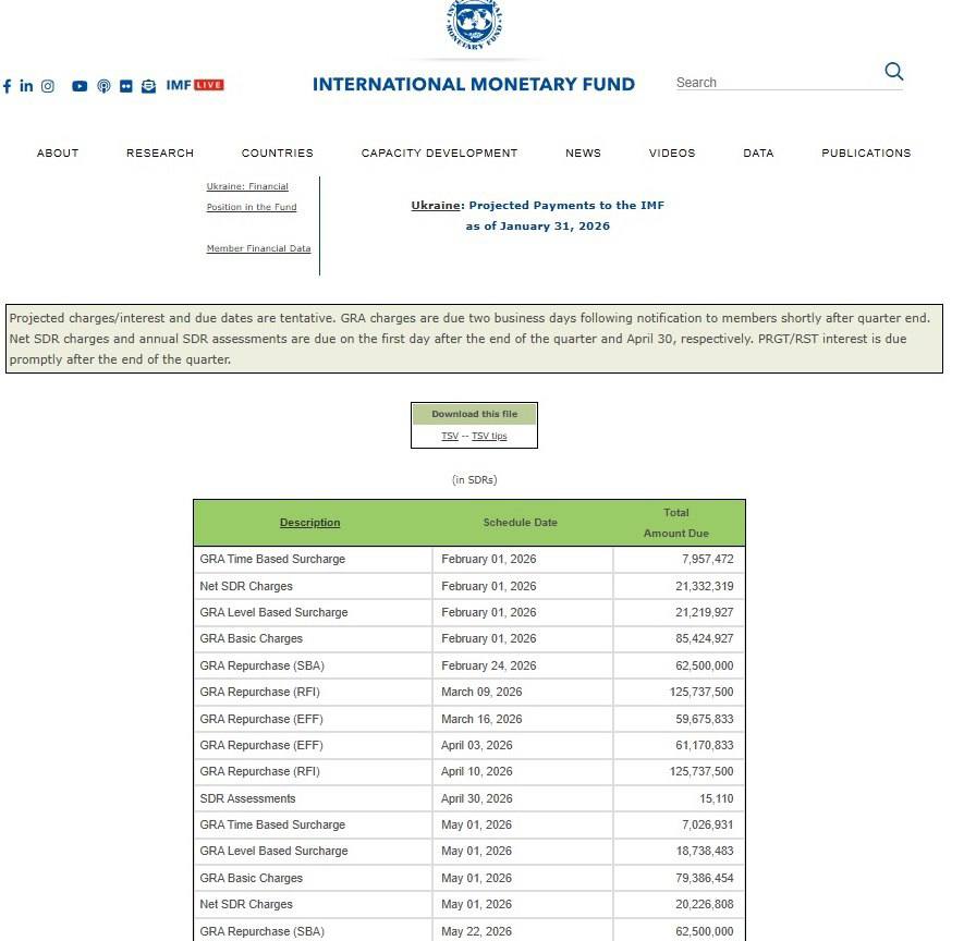 При этом по графику выплат по ранее предоставленных фондом кредитам в 2026 году Украина обязана отдать МВФ 1,88 миллиарда SDR или 2,7 миллиарда долларов. То есть в течение этого года придется отдать указанные 71,1% полученной суммы.