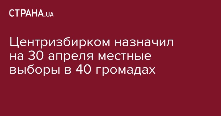 Центральная избирательная комиссия на воскресенье, 30 апреля 2017 года назначила первые местные выборы в 40 объединенных территориальных громадах. Об этом сообщает пресс-служба ЦИК.