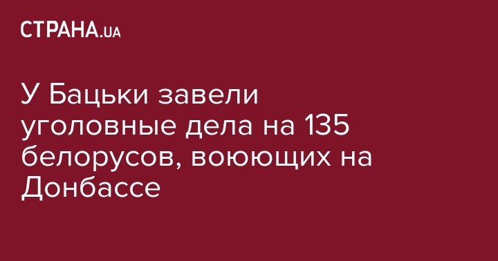 В Беларуси завели 135 уголовных дел на сограждан, которые воюют на Донбассе, завил начальник главного управления по борьбе с организованной преступностью и коррупцией МВД Беларуси Николай Карпенков, сообщает "Зеркало Недели" со ссылкой на газету "Звезда"