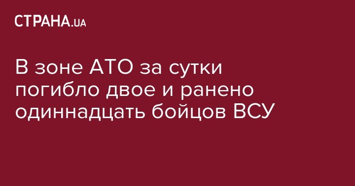 За прошедшие сутки в зоне АТО погибло двое украинских военных. Еще одиннадцать бойцов ранено: восемь в результате обстрелов, трое – подорвались на взрывном устройстве, сообщил спикер АП по вопросам АТО Александр Мотузяник 26 марта в эфире "112 Украина".
