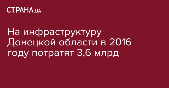 На инфраструктуру Донецкой области в 2016 году потратят 3,6 млрд