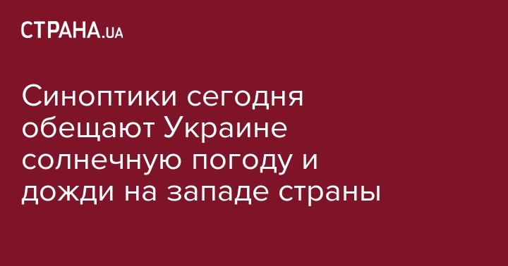 По прогнозам Укргидрометцентра, сегодня на территории Украины, в основном будет без осадков. Только в западных областях пройдут дожди, а на Закарпатье и Прикарпатье местами ожидаются ливни с грозами.