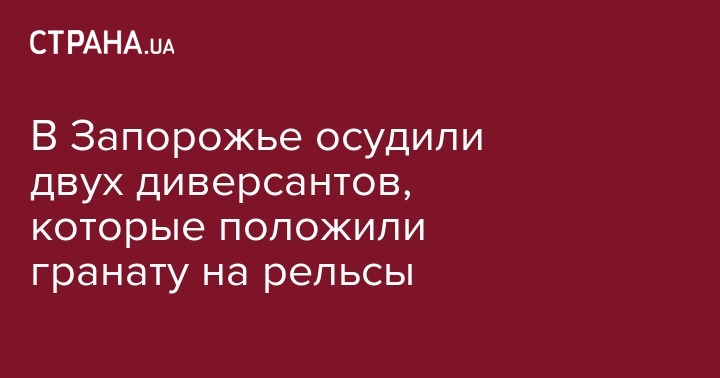 Октябрьский районный суда Запорожья признал виновными в совершении диверсии двух жителей Донецкой области, которые положили гранату на железнодорожные рельсы. Мужчины получили тюремный срок в 10 и 11 лет. Об этом сообщает прокуратура Запорожской области.