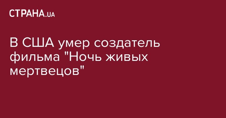В США на 77-м году жизни умер режиссер Джордж Ромеро, прославившийся благодаря серии фильмов "Ночь живых мертвецов". Об этом сообщает Русская служба ВВС.