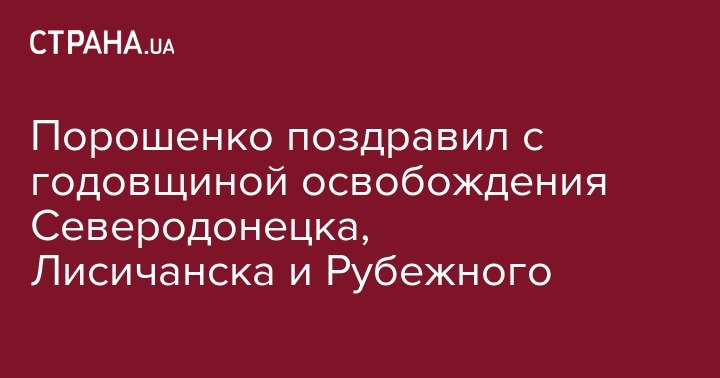 Порошенко поздравил с годовщиной освобождения Северодонецка, Лисичанска и Рубежного