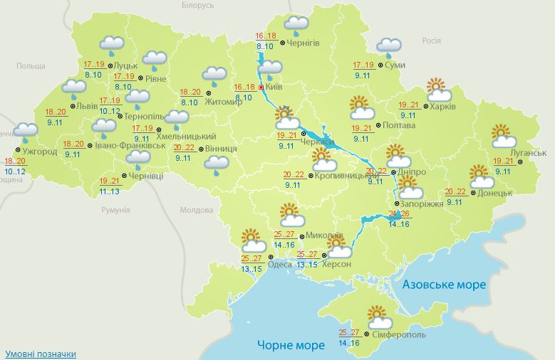 По Украине в целом незначительные дожди пройдут только в Хмельницкой, Винницкой и Ивано-Франковской области. Средняя температура на Западе - +17...+21.