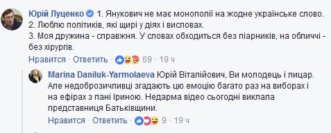 Через некоторое время Луценко написал свой комментарий под постом журналистки.