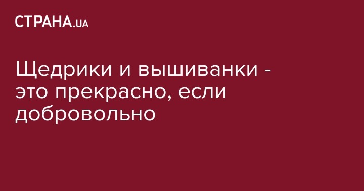 Вышиванки и щедрики - это нормальная часть народной культуры. Это как килты и кельтские песни, к примеру. Только их носят на гуляньях и поют на фестивалях, не принуждая к ним, как к дресс-коду - как это делают теперь у нас. Не нравится - не пой, не слушай и не носи - так работает этот принцип в демократическом обществе. Нравится - пожалуйста. У нас в доме мужик выгуливал собаку в кирасе и в ботфортах. Воображал себя мушкетером его величества короля Франции.