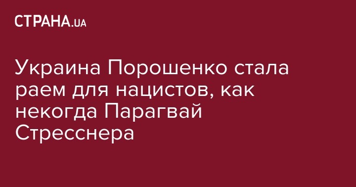 "Украина Порошенко стала раем для нацистов, как некогда Парагвай Стресснера. И я, думаю, это его единственное достижение за 4 года.