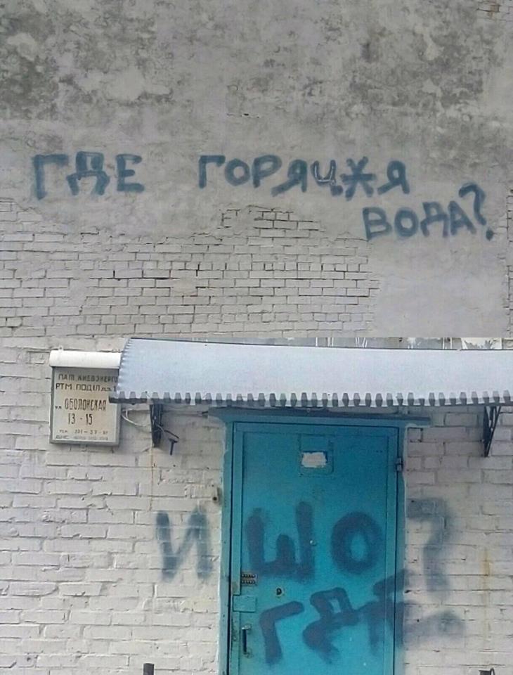 Киев. Подол. Надпись на здании "Киевэнерго". Три месяца у Людей нет Горячей Воды. И в ближайшее время не Предвидится.