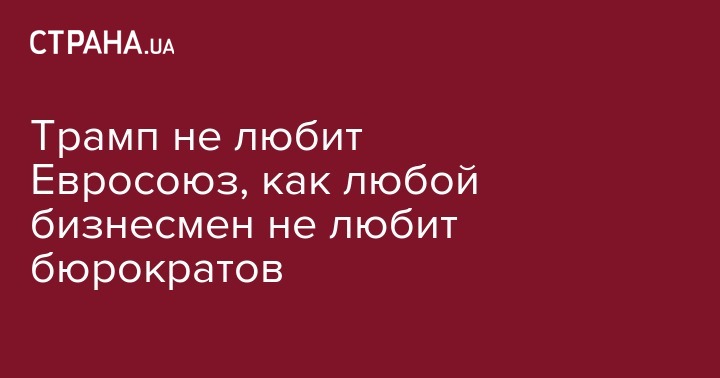 Трамп почти не скрывает своего отвращения к ЕС и, справедливости ради, надо признать, что для этого у него есть все основания. В понимании Трампа ЕС - это громоздкое геополитическое образование, в котором общество оказалось отчужденным и вся власть перешла к европейским чиновникам , которые не имеют никакой связи с гражданами ЕС. Еврокоммиссия, Европарламент и все другие наднациональные органы ЕС уже давно и окончательно обюрократились и поэтому не выражают никаких других интересов, кроме своих собственных. Ну, а как неоднократно доказала мировая практика, любая бюрократическая организация , не имеющая связи с обществом, всегда принуждает общество повышать затраты на свое содержание. Именно это и происходит в ЕС. Цинизм и лицемерие бюрократических контор ЕС заключается в том , что они постоянно увеличивают дань на свое содержание под красивыми лозунгами о защите свободы и радении о правах человека.