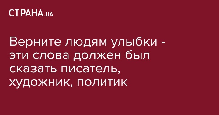 Верните людям улыбки. Я ждал, что эти слова произнесет украинский министр культуры. Или наш известный писатель, поэт, музыкант, актер, певец, шоумен, наконец. Или художник.