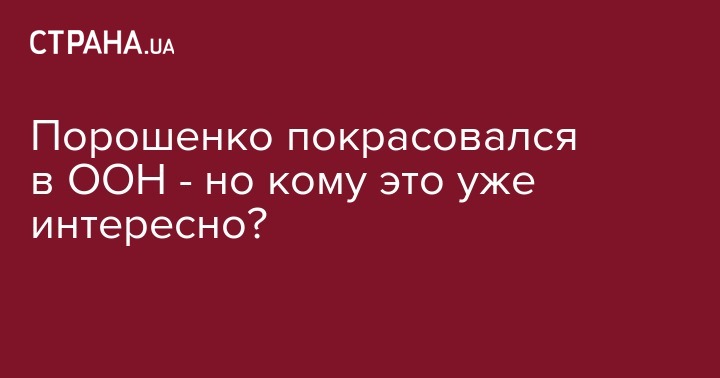 Президент наш, Пётр Алексеевич, отлично выступил на сессии Генассамблеии ООН. Замечательно выступил - чётко, по делу, без компромиссов. Назвал Россию агрессором, рассказал, как каждый день гибнут наши солдаты на Донбассе, призвал мировое сообщество принять срочные меры... А мировое сообщество забило. Положило болт. Сделало вид, что не услышало. Послало ко всем чертям... Только Польша поддержала, и, кажется, всё. Трамп говорил всё время про горячо нелюбимый им Иран, но ни слова про Украину. Потому что Украины нет. Украина - фантом. Война - миф. Донбасс - выдуманные боли. Если нация не защищается - она никому не интересна на всемирном собрании наций. И как бы ни был хорош Порошенко в ООН - виноват во всём только сам Порошенко. Чего теперь кричать "держи вора!", когда тебе никто уже не верит?..