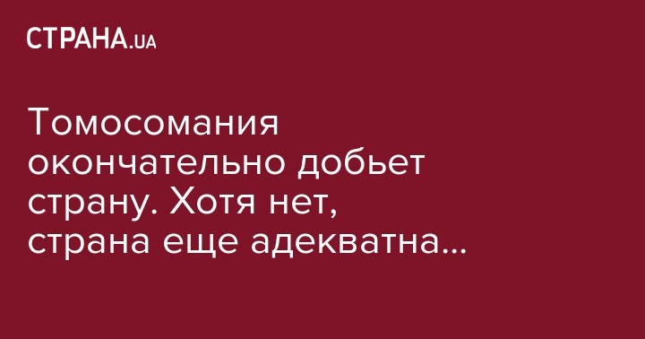 Томосомания наверняка добьёт страну. Впрочем, нет, не страну. Потому что страна у нас все ещё адекватна - она работает, платит налоги, ходит в школы, открывает бизнесы... Однако верю (парадокс), что томосомания окончательно разрушит шансы нынешней правящей команды. И потому пусть они увеличат объемы этой пропаганды. Пусть перекормят нас ею. Пусть доведут нас до отвращения и даже до блевоты. А потом исчезнут... Иначе мы так и останемся на обочине современного мира, где светское лицо, менеджер-президент всерьёз часами рассказывает нам о том, что только бумага с вязью имеет значение...