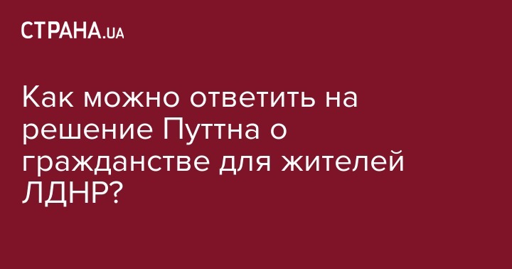 Единственным достойным ответом Владимиру Путину на подписание Указа об упрощении порядка получения паспортов РФ гражданами Украины, проживающими в ЛДНР, может быть только ответный и не худшего качества шаг! Например: возобновление выплат им пенсий (как минимум)!, а то и обьявление амнистии всем участникам конфликта!!!!