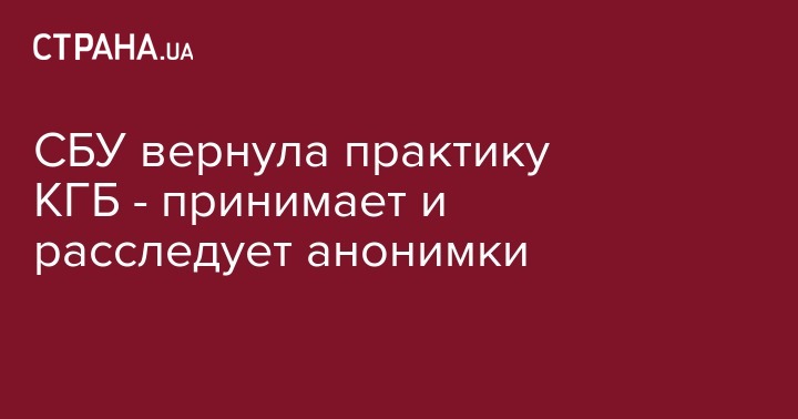 СБУ вернула практику КГБ - принимает анонимки и расследует. Прекрасный финал декоммунизации