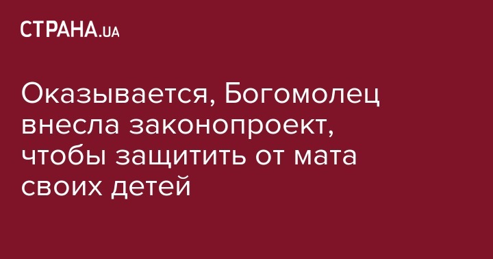 Як пояснила Ольга Вадимівна, цей законопроект вона внесла не як народний депутат, а як жінка та матір чотирьох дітей, яких вона прагне захистити від знайомства з нецензурною лексикою. Вже по завершенні передачі я поцікавився, скільки ж рочків мають дітки пані Богомолець. Виявилось, що жінка та матір розробила цей законопроект заради сина Андрія, якому 30 років, і доньок Катерини (25 років), Анни (21 рік) та Софії (13 років). Думаю, що пізно вона схопилась.