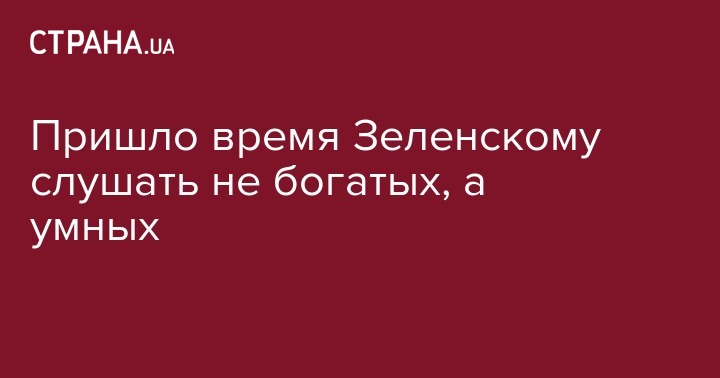 ПРИШЛО ВРЕМЯ В.ЗЕЛЕНСКОМУ СЛУШАТЬ НЕ БОГАТЫХ, А УМНЫХ. 73% избирателей возлагают на него свои надежды, полагая, что именно Президент В.Зеленский сможет встряхнуть страну как сбитое одеяло, закрутить машину украинской экономики, заставить работать промышленность, которую текущий кризис отбросил минимум на десяток лет.