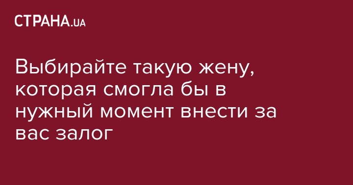 Выбирайте себе жену такую, чтобы могла и хотела в нужный момент внести за вас залог.