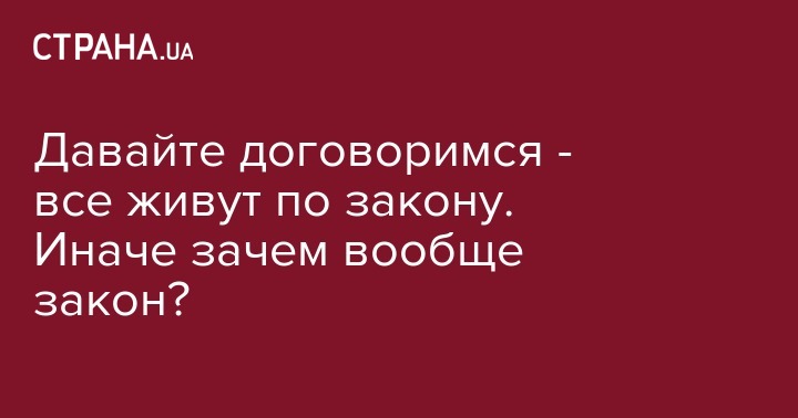Тогда все будут довольны. Но условимся. Все живут по закону.