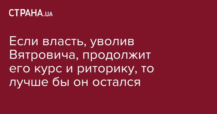 Я против персонификации проблем. В большинстве наших бед виновны не просто конкретные личности, а получение доминирования в государственной политике определенных подходов. Если нынешняя власть, уволив Вятровича, продолжит его националистический курс и риторику, то лучше бы он остался. Он хотя бы уже раздражал большинство украинцев, а новый «Вятрович» сможет с новой эффективностью продвигать опасный вирус вражды в обществе.