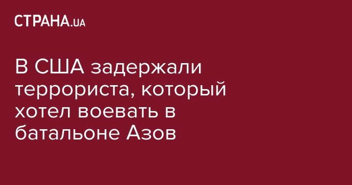 "Сотрудники Федерального бюро расследований США (ФБР) арестовали американского военнослужащего, который собирался уехать в Украину, чтобы вступить в батальон "Азов" и воевать. Также он распространял экстремистскую информацию и обсуждал изготовление бомб с социальных сетях. Об этом в понедельник, 23 сентября, передает американский телеканал ABC News.