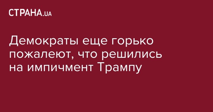Демократы потом еще горько пожалеют , что решились на импичмент Трампу. Именно они и окажутся главными проигравшими в этом деле.