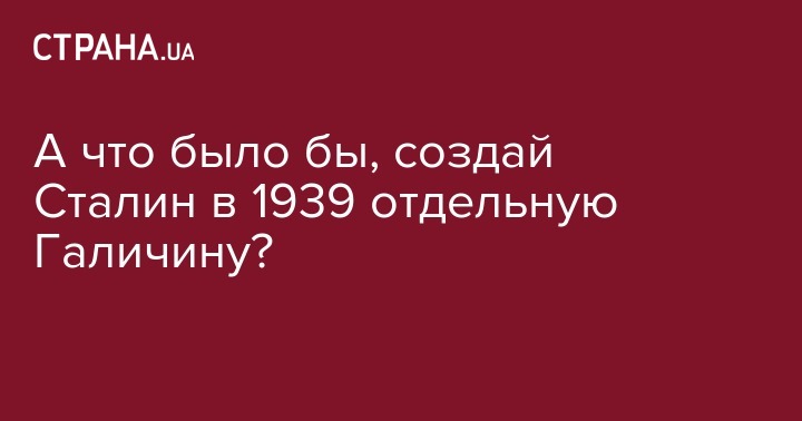 Подумалося: якби у 1939 році Сталін не приєднав Західноукраїнські землі до УРСР, а створив на основі шести східних воєводств Польщі окрему державу- «сталініду» (як свого часу Наполеон творив наполеоніди, а Гітлер створив Словаччину чи Хорватію), історія пішла би за іншим сценарієм. Точно 22 червня 1941 року не почалася б радянсько-німецька війна - спершу або одній, або іншій стороні потрібно було би анексувати Галичину, а потім переходити до активних бойових дій одні проти одних. Балансування між двома гегемонами витворило би нову специфіку і політичну поведінку: на сьогодні Галичина була би проросійською за своєю політичною орієнтацією, а Україна - більш прозахідною. Принцип «дружити через сусіда» ніхто не скасовував)).