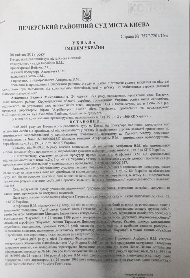 06 апреля 2017 года прокурор Атаманчук посетил Печерский районный суд, где просил Агафонова В.М. освободить от ответственности.