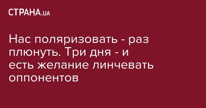 Нас поляризовать - раз плюнуть. Три дня и есть желание линчевать оппонентов. Это проще, чем перевоспитать.