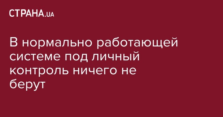 "Личный контроль" - это всегда следствие того, что система не работает и чтобы хоть как -то протолкнуть какой -то вопрос , нужен этот самый " личной контроль", без которого в стране ни черта не делается.