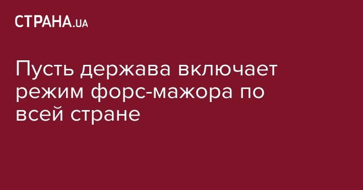 Так пусть держава зафиксирует ситуацию, разъяснит всем заинтересованным сторонам и включает режим форс-мажора по всей стране. Тогда на совершенно законных основаниях. а не по доброте душевной арендодатели перестанут начислять платежи, банки - проценты по кредитам и все поставщики услуг ЖКХ - пени и штрафы.